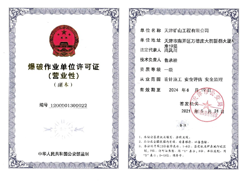 爆破作業(yè)單位許可證(營(yíng)業(yè)性)